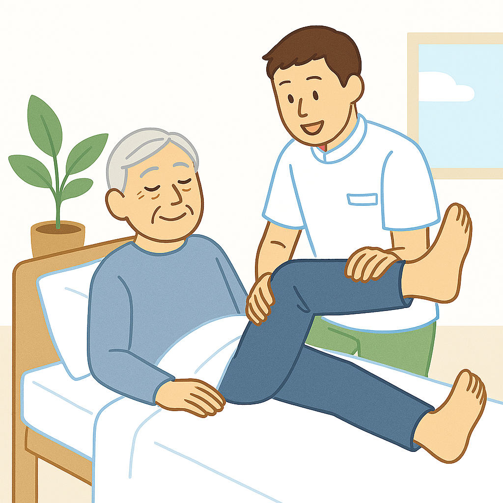痛みが出る場所、動きにくい部分、普段の生活で困っていることなどをお伺いし、その方に合った方法で当日の症状に応じてご希望に沿った施術を行います。「痛くないか」「続けられそうか」など、ご本人やご家族が不安に思う点を実際に体験しながら確かめられる時間です。